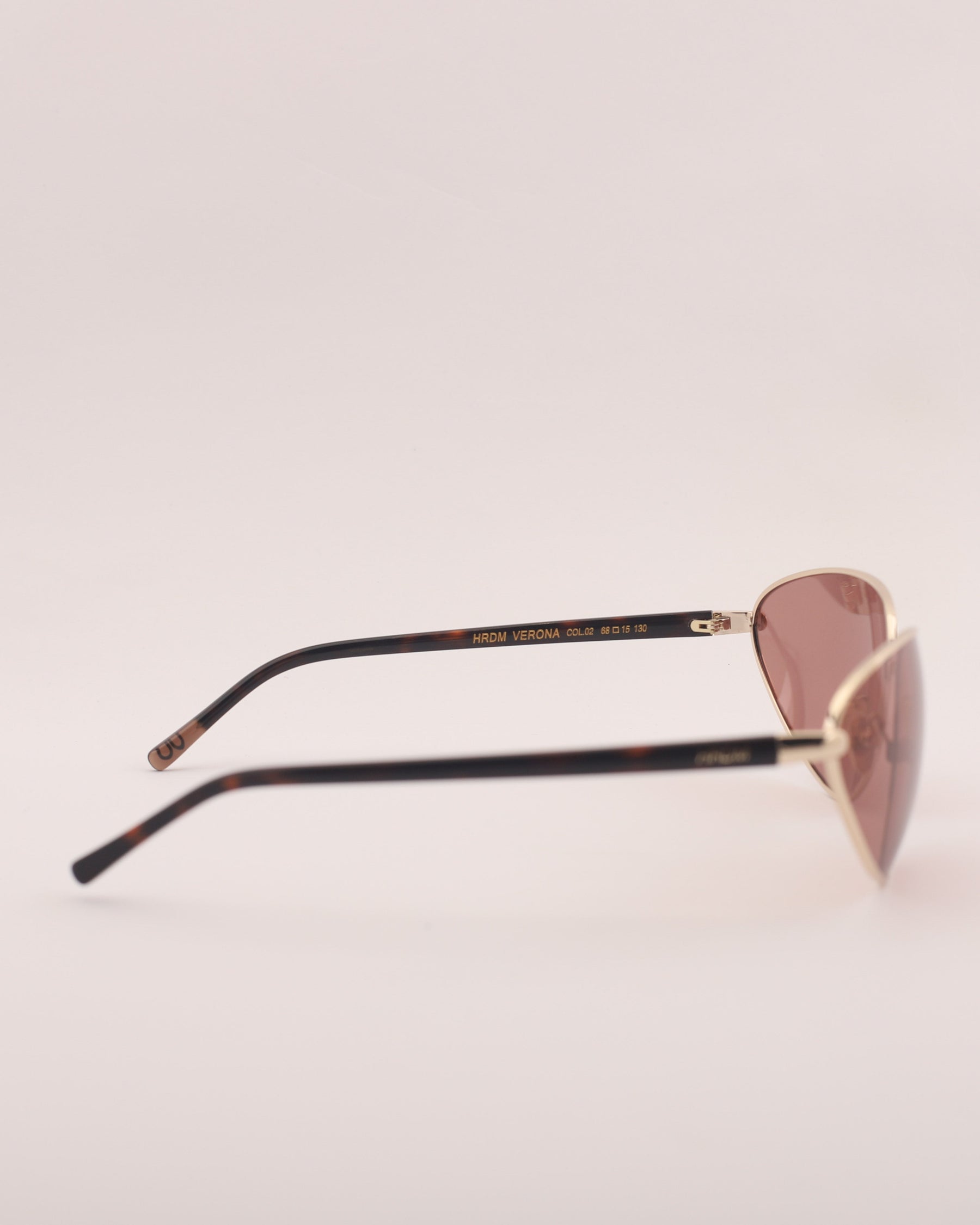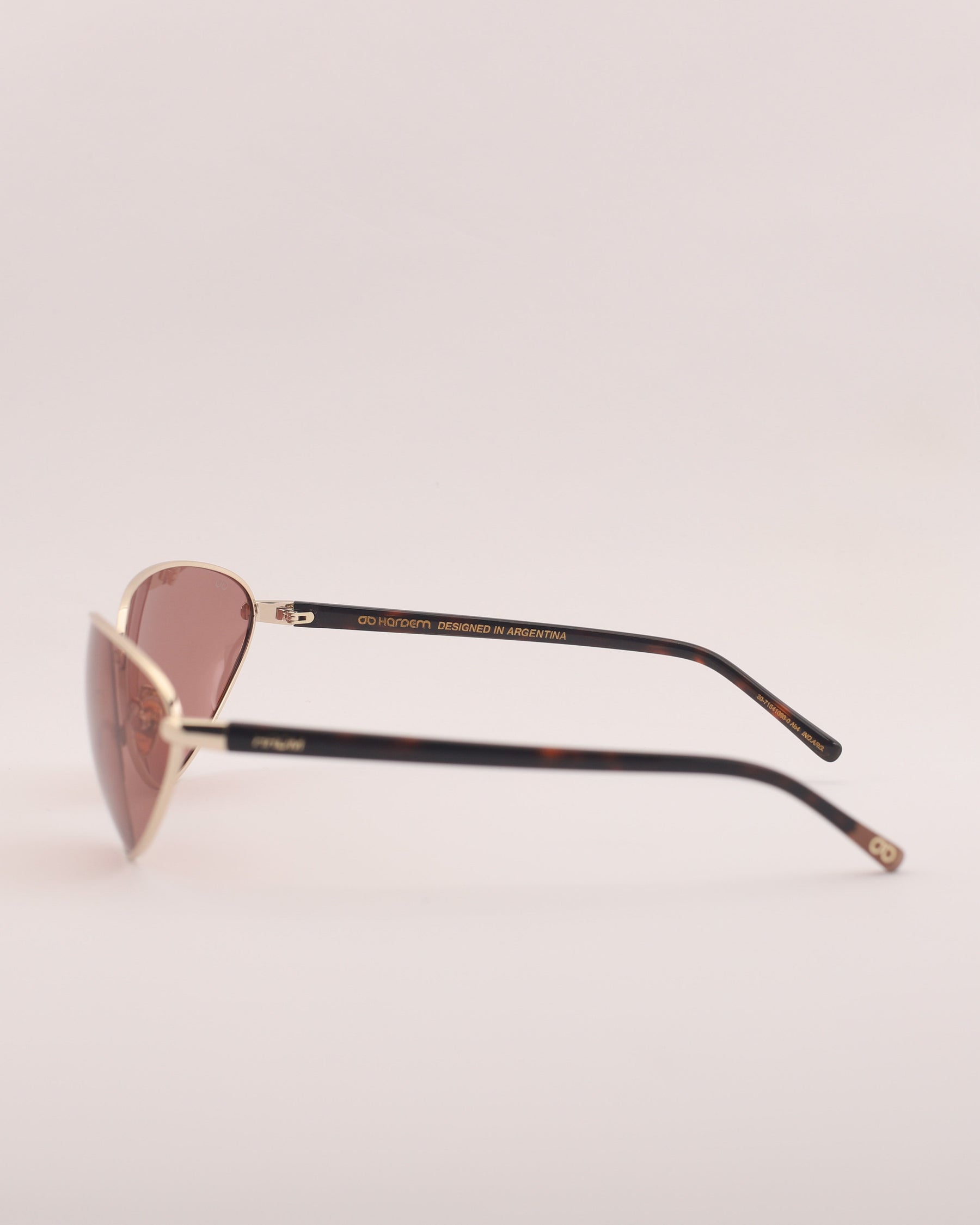Sunglasses made of metal with a glossy gold front and glossy tortoiseshell temples. Opaque pink lenses with UV 400 protection and polarization.